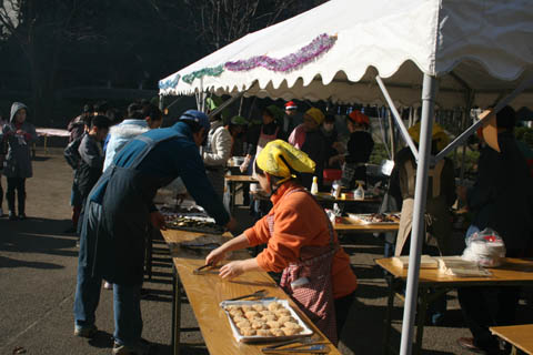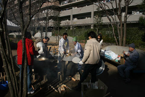 豚汁も調理が急ピッチで進んでいます。おいしい香りが漂います。