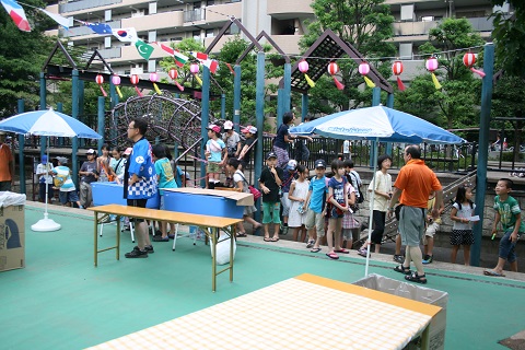ゲームコーナーのあとは、待ちに待った縁日コーナーの始まりです。子ども達も今か今かと待っています。