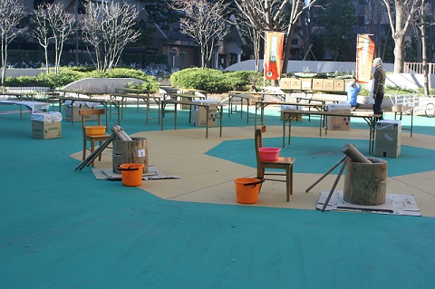 もちつきの準備をしています。