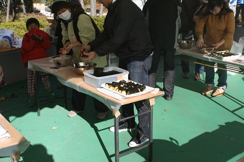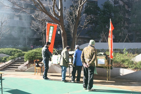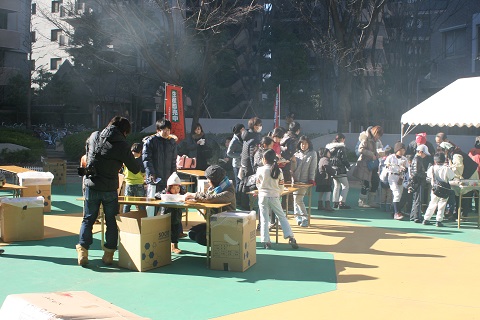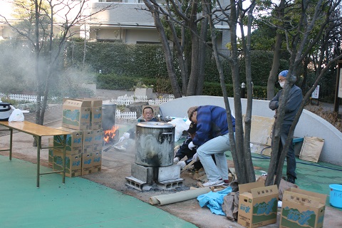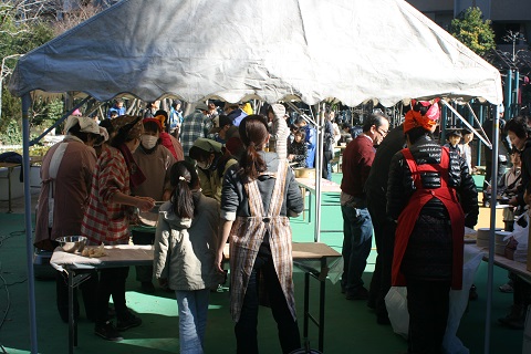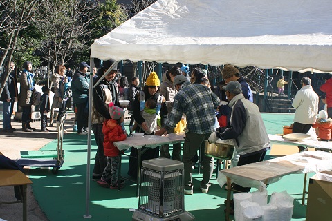 トン汁もできあがり、配布が始まりました。暖かいトン汁で、冬の寒さもふっトンでしまいます。