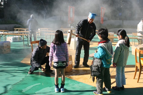 2013年12月22日もちつき会を開催しました。お天気にも恵まれ、おいしいお餅とトン汁に舌鼓を打ちました。