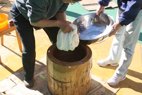さあ、いよいよもちつきの始まりです。かけ声と共に、よいしょっ!